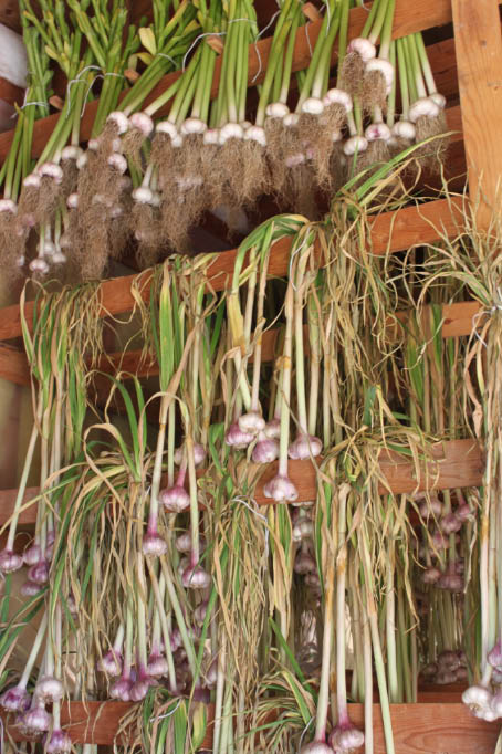 Presently we grow 6 different strains of garlic that we find offer the best results in this climate. We are always experimenting and trying new varieties. We firmly believe that bio-diversity even within our small farm is a good hedge against climate fluctuations and disease problems.